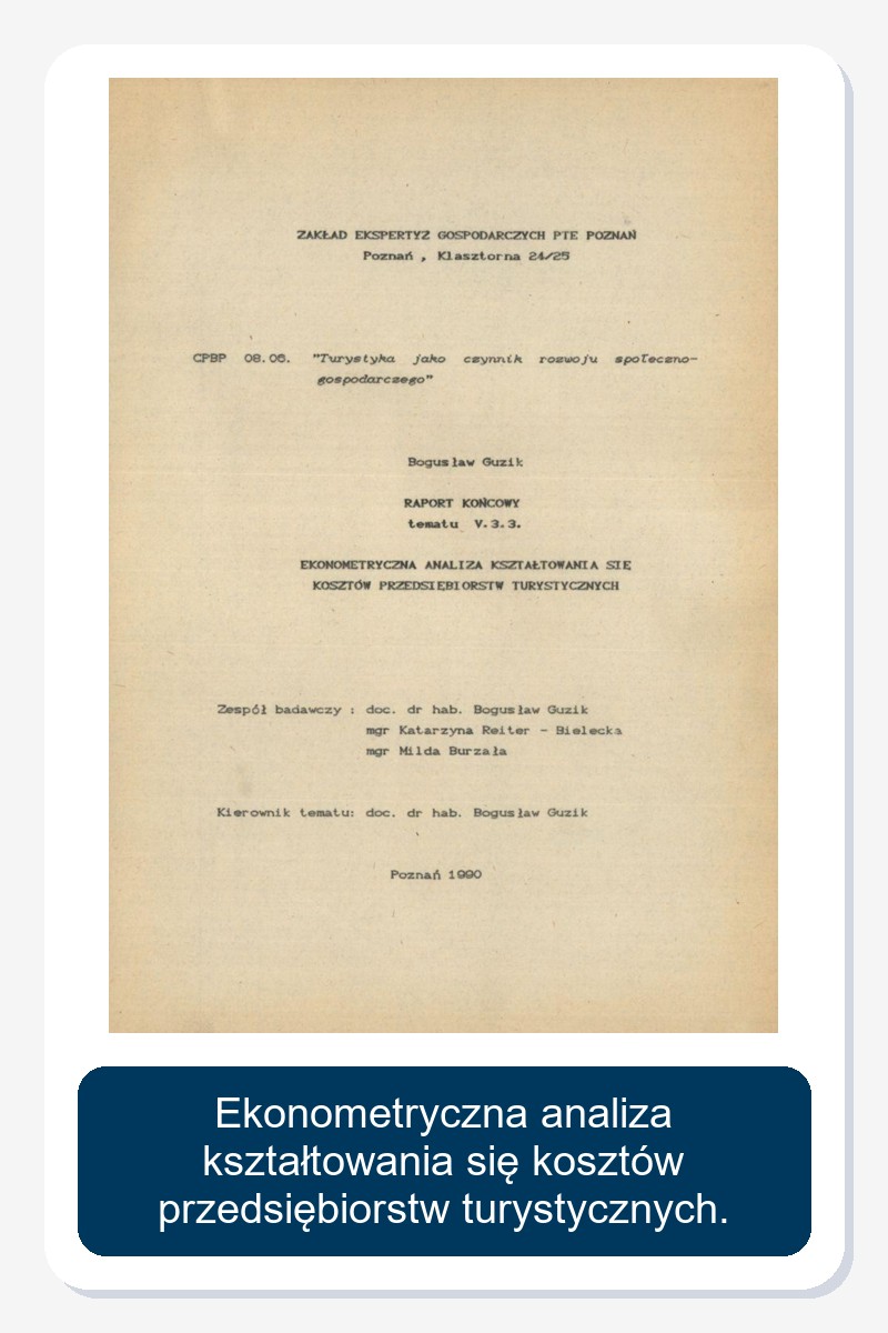 Ekonometryczna analiza kształtowania się kosztów przedsiębiorstw turystycznych. Raport końcowy. CPBP 08.06-V-3.3