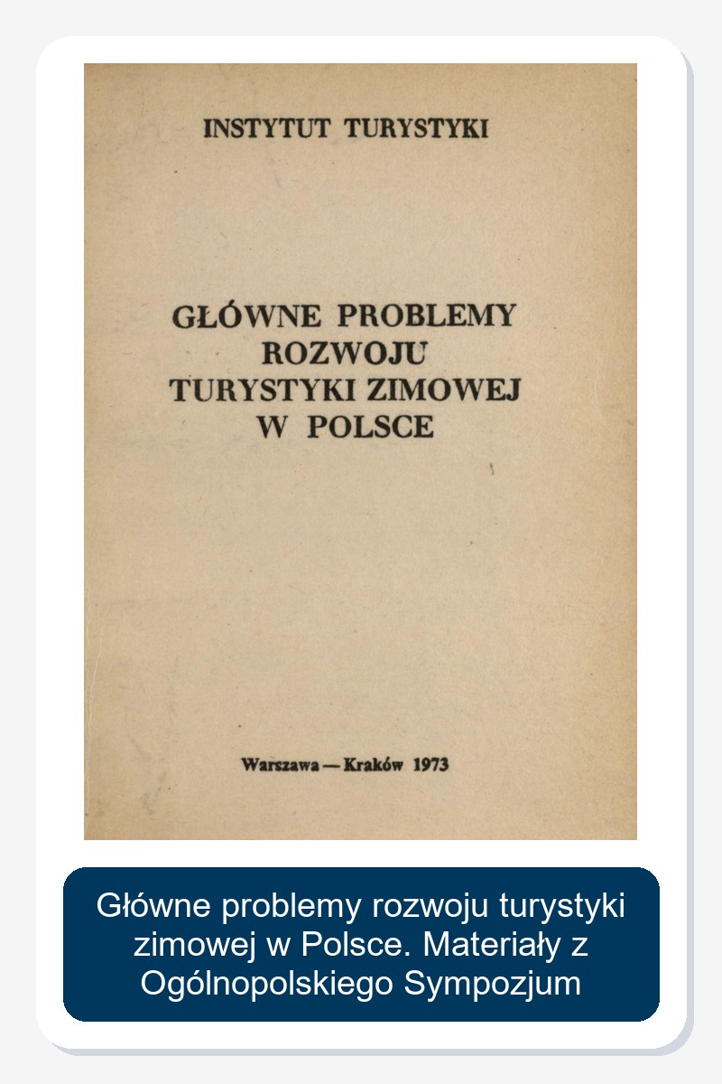 Główne problemy rozwoju turystyki zimowej w Polsce. Materiały z Ogólnopolskiego Sympozjum zorganizowanego przez Pracownię Krakowską Zakładu Zagospodarowania turystycznego GKKFiT w dniach 18 i 19 kwietnia r. w Krakowie.