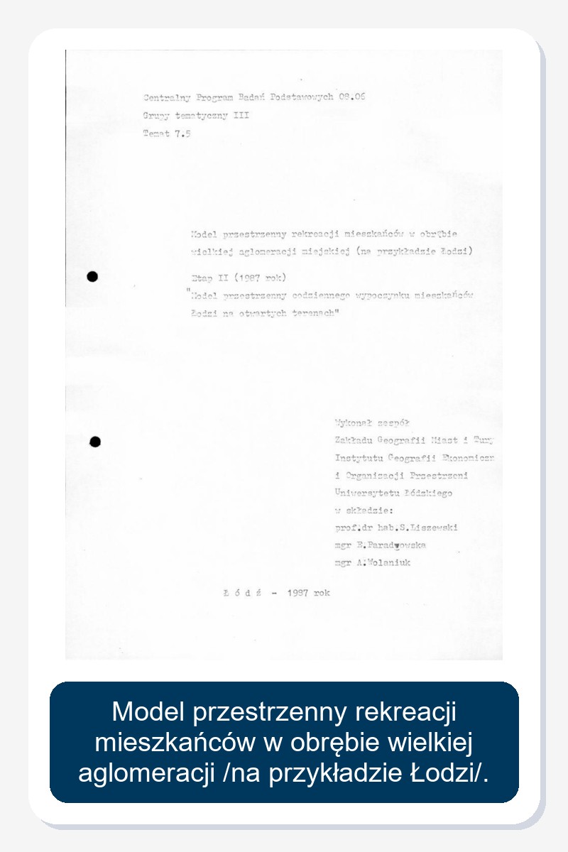 Model przestrzenny rekreacji mieszkańców w obrębie wielkiej aglomeracji /na przykładzie Łodzi/. CPBP 08.06-III-7.5 Etap II: Model przestrzenny codziennego wypoczynku mieszkańców Łodzi na otwartych terenach.
