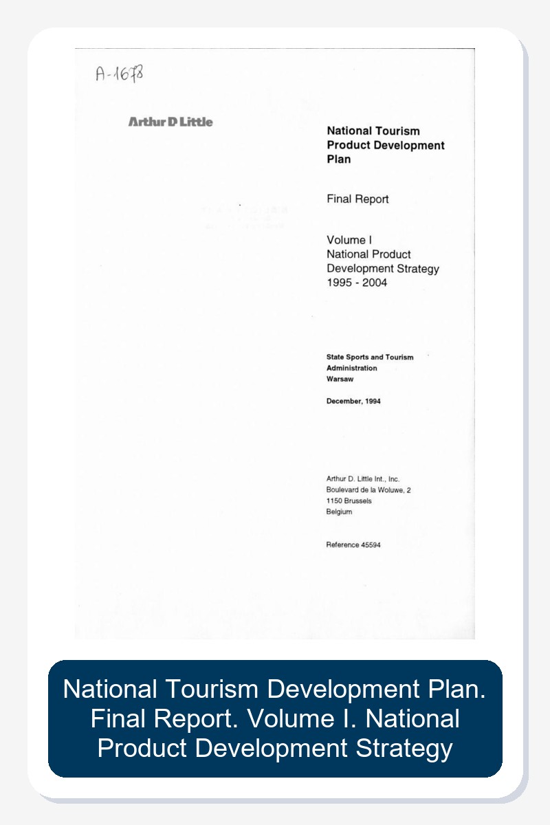 National Tourism Development Plan. Final Report. Volume I. National Product Development Strategy 1995-2004 / December version/